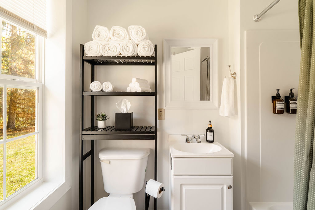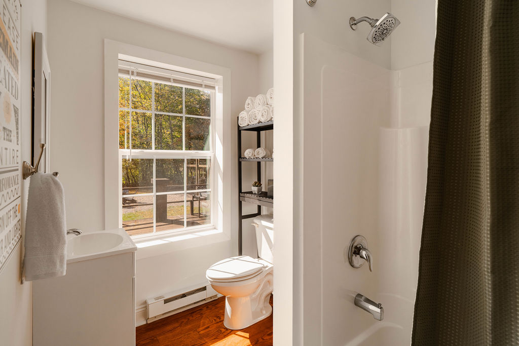 – Both equipped with modern fixtures, fresh towels, and shower/tub combos.