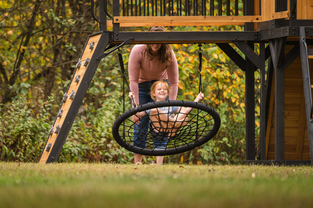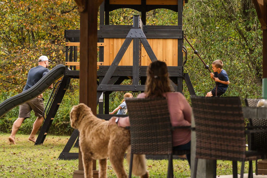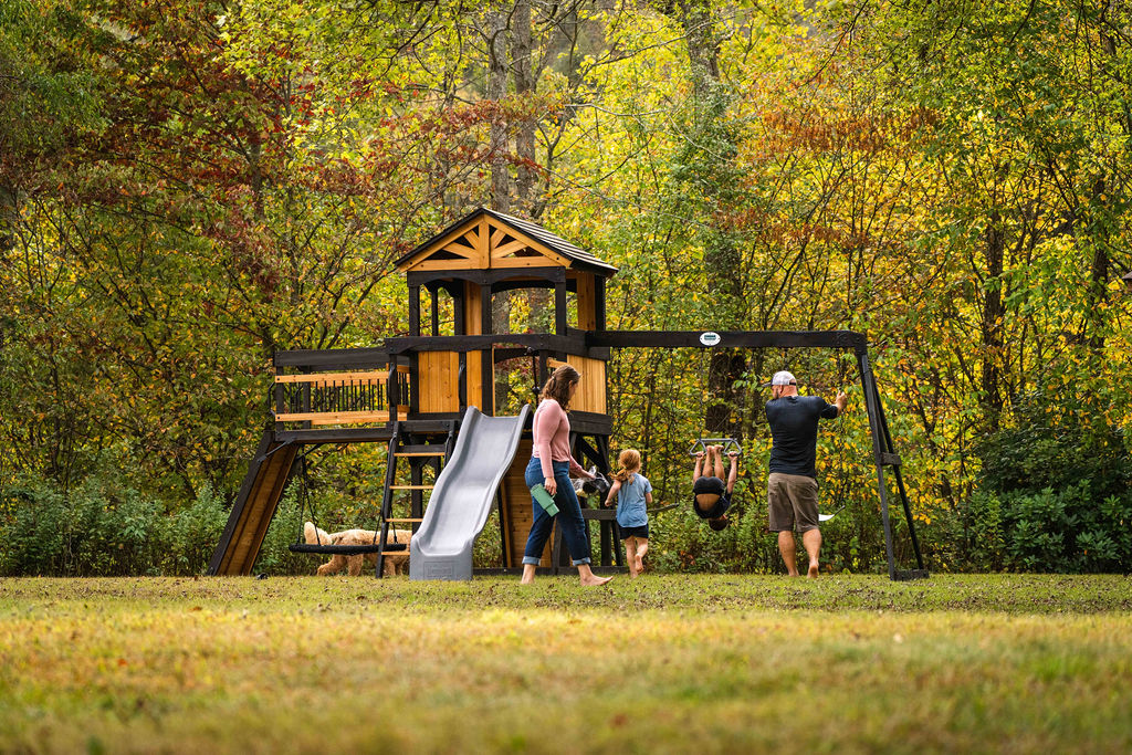 🌲 Kid-Friendly Fun – A custom swingset complete with swings, slide, and treehouse keeps the little ones busy while adults relax.