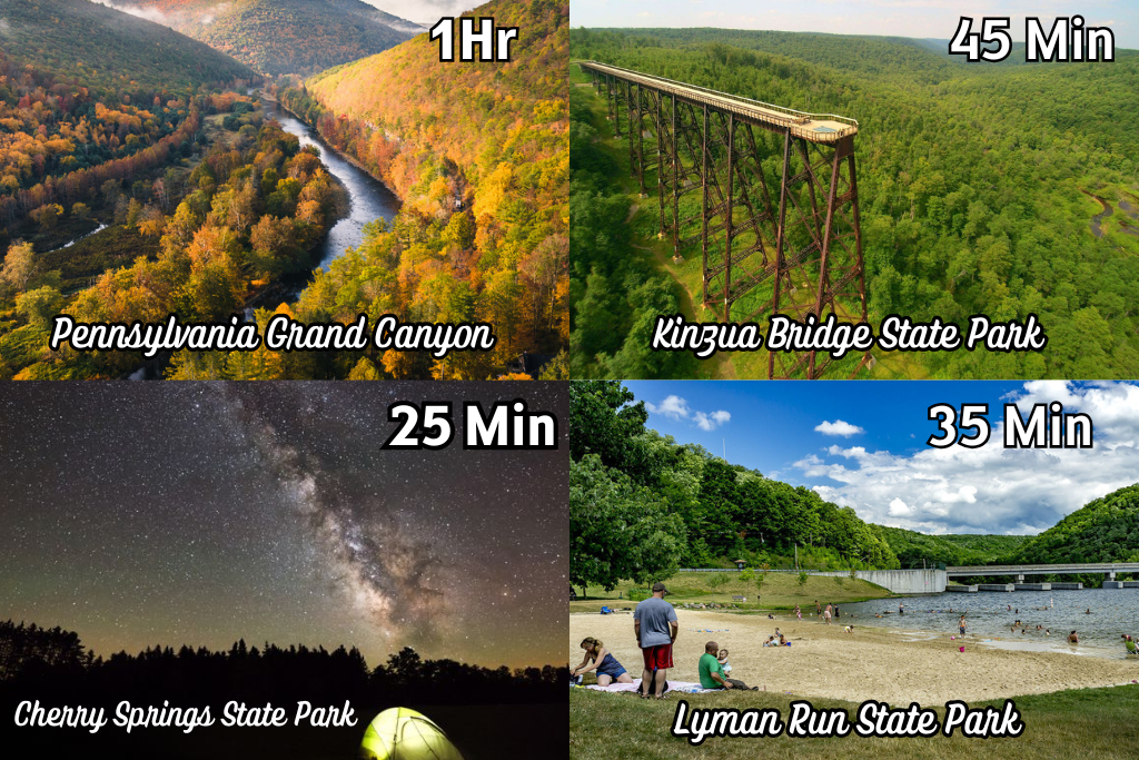 While you’ll have everything you need right on the property, Runway Retreat is also perfectly positioned to explore northern Pennsylvania’s most beloved attractions: