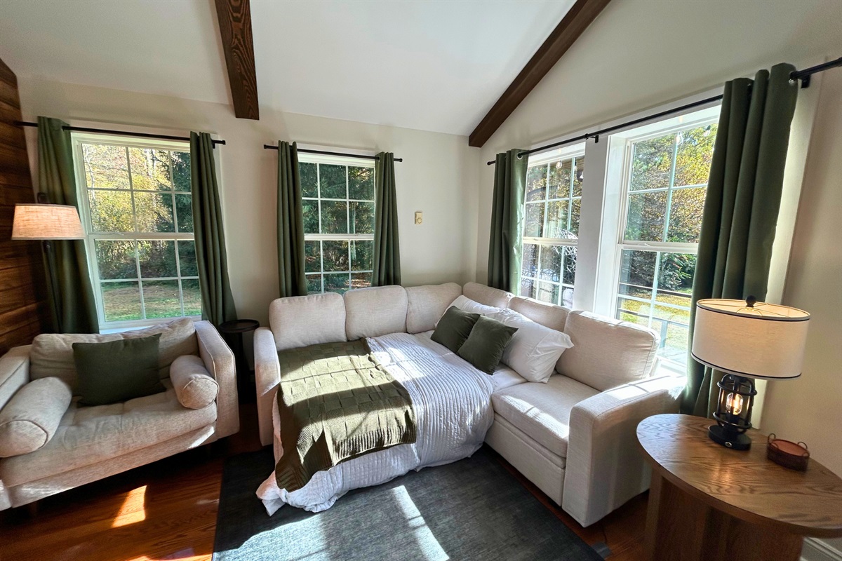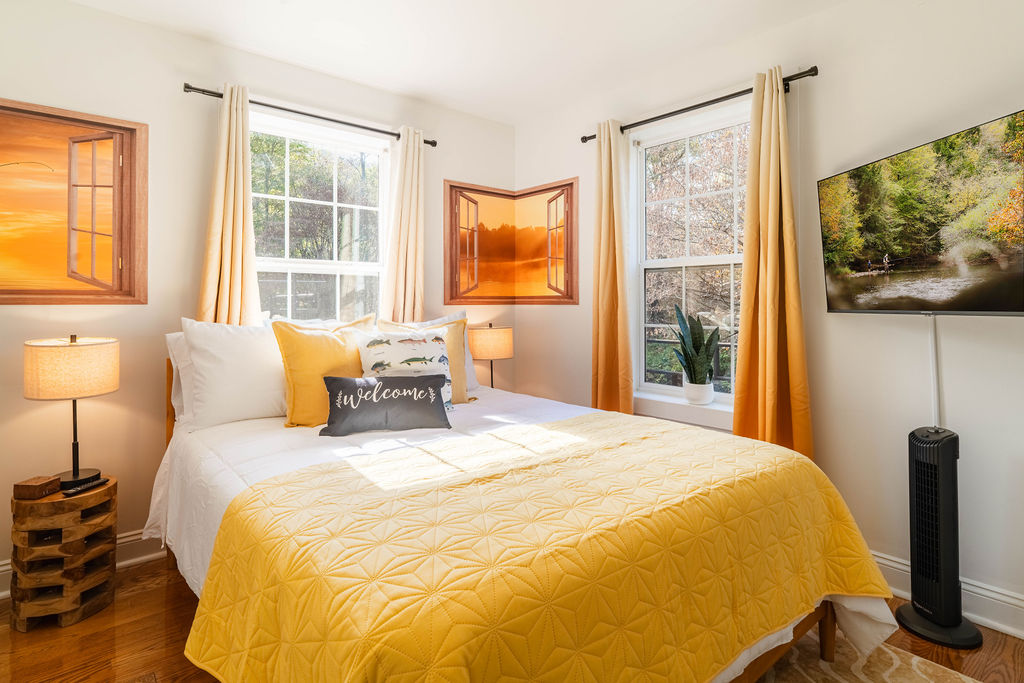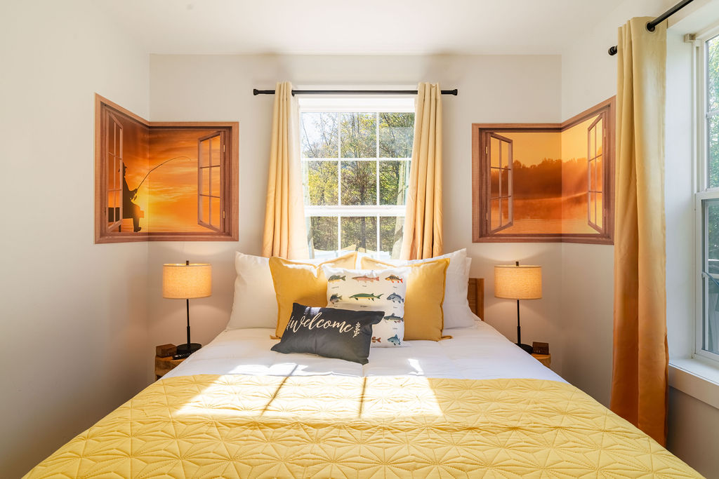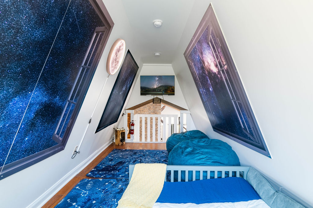 Step inside and discover a cabin designed to inspire. Runway Retreat combines rustic textures with playful aviation flair, creating an inviting space filled with thoughtful details.